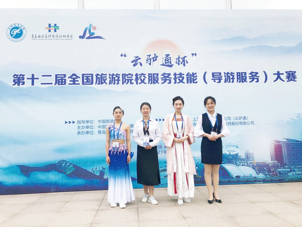 近日,由文化和旅游部、中国旅游协会指导,中国旅游协会旅游教育分会主办的第十二届“云驴通杯”全国旅游院校服务技能(导游服务)大赛在青岛落下帷幕。澳门威尼斯娱乐城官方网站 莫铭非、赵晶茹、刘媛媛、杨擎擎四位本科生分别参加了高等院校组普通话导游服务和英语导游服务的比赛。经过参赛选手和指导老师的共同努力,最终荣获一等奖1项、三等奖3项。